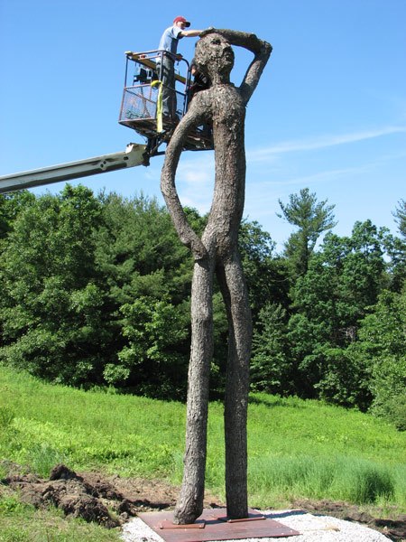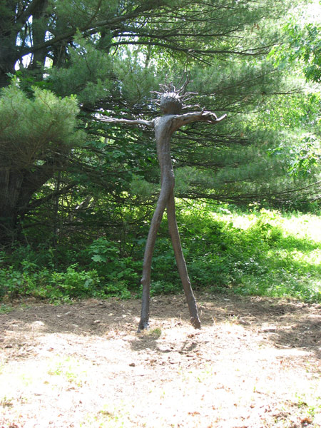 Joseph Wheelwright Tree Figures at Fruitlands Museum A major exhibition of Wheelwright's large tree figures, ranging to 30 feet tall, appeared at Fruitlands Museum in Harvard, Massachusetts in 2010. The indoor Ell Gallery exhibition "Branching Out" was a retrospective of Wheelwright's smaller wood and bronze tree sculptures going back 30 years. For more information, visit the Fruitlands Museum website. Click here to see a picture book about the tree figures with an essay by Susan Landauer, including early works in wood by Wheelwright. (Press the thumbnails below for a larger view, and then swipe, scroll, or use the arrow buttons to navigate. Tap the images to turn captions on and off.) |