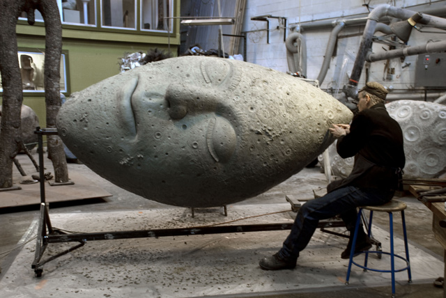 Plasticine for Bronze Approximately 9' long x 5' diameter Installed near the clock in Peabody Square, Dorchester, MA in June 2010 Photo of work in process: March 2010
